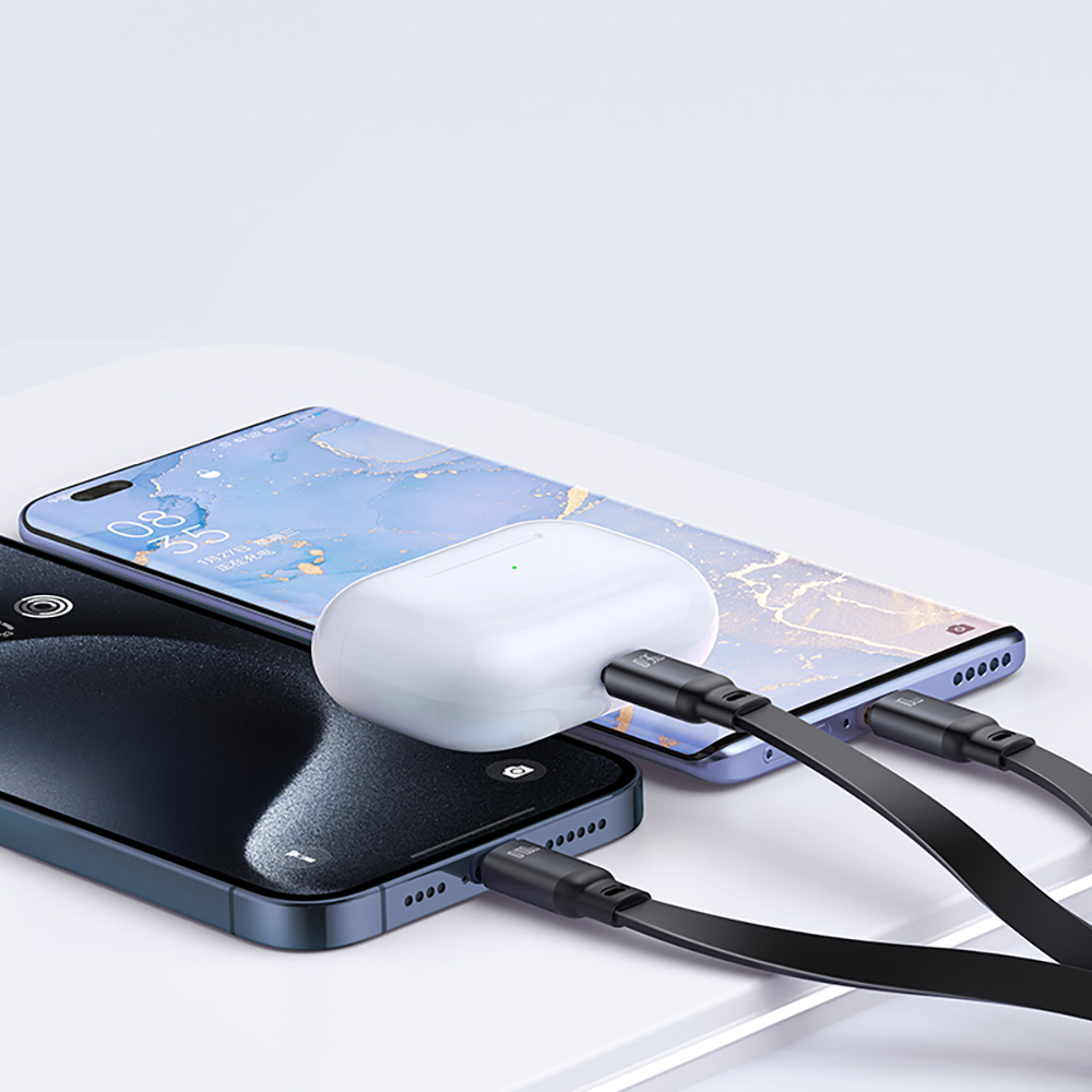 If you have several phones from different manufacturers in your home or if you are looking for a cable that is durable and comfortable to use. This is the ideal solution for you. The cable with retractable mechanism is ideal for long journeys and keeps your bag or backpack tidy. triple!
