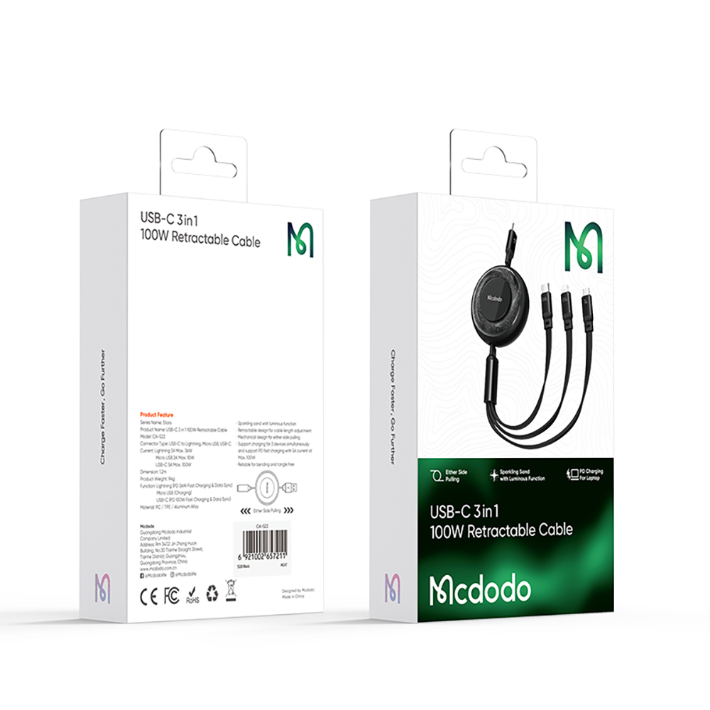 - 1 x Mcdodo Sparkling 3-in-1 retractable cable 100W 1.2m black