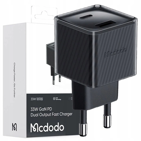 MCDODO SZYBKA ŁADOWARKA SIECIOWA DO TELEFONU ZASILACZ 2X USB USB-C 33W GAN CZARNA