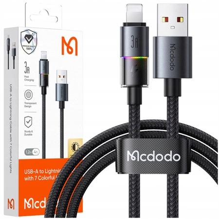 MCDODO KABEL USB SZYBKIE ŁADOWANIE DO IPHONE LIGHTNING 3A 36W 1M LED CZARNY