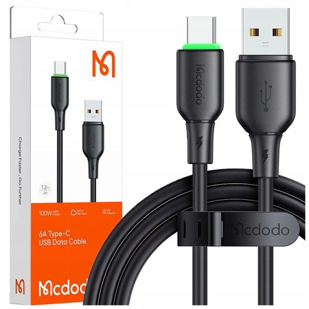 MCDODO KABEL USB-C SZYBKIE ŁADOWANIE DO SAMSUNG XIAOMI TYP C 6A 100W 1M LED CZARNY